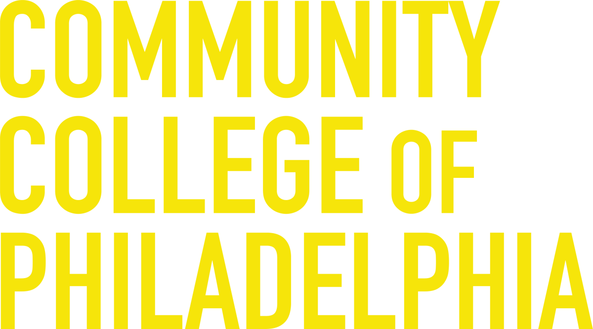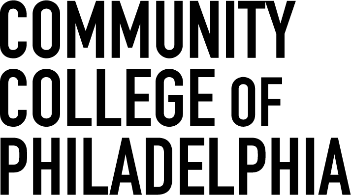 The wordmark places equal emphasis on the words “Community,” “College” and “Philadelphia.” The word “of” is purposefully offset in a smaller size.