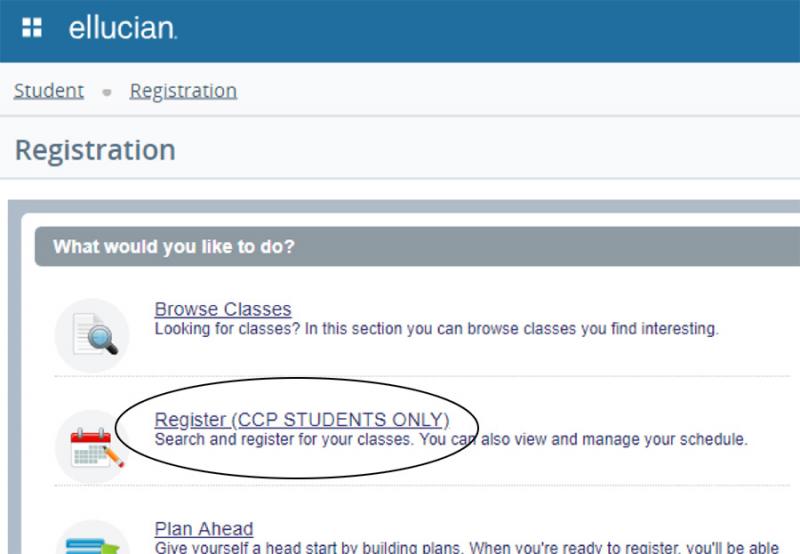 8. Click on Register (CCP STUDENTS ONLY).