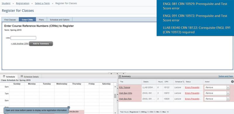 13. If you see Errors Preventing... under the Status and an Error message at the top, you are NOT registered for the course and must try again.