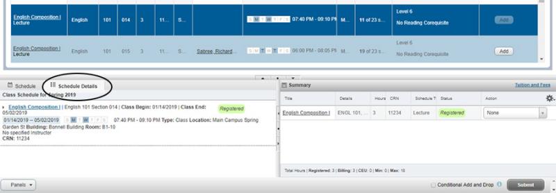 15. Once you have successfully registered, click on Schedule Details to review your schedule.