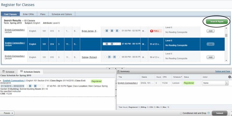 17. To add another class, click Search Again.