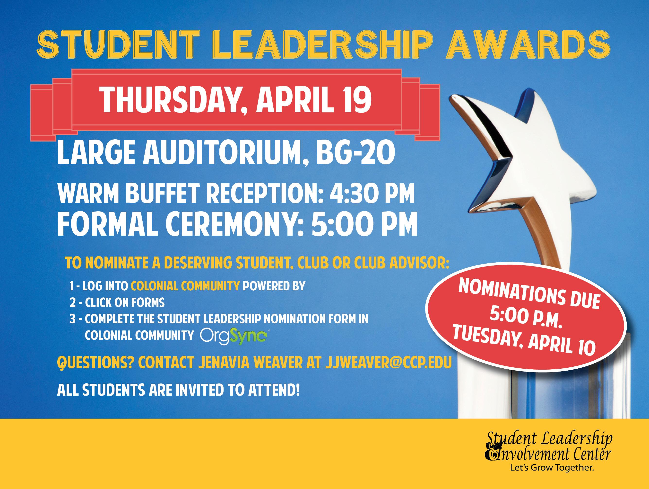 A reception will be held at 4:30 p.m. and the award ceremony begins at 5 p.m.