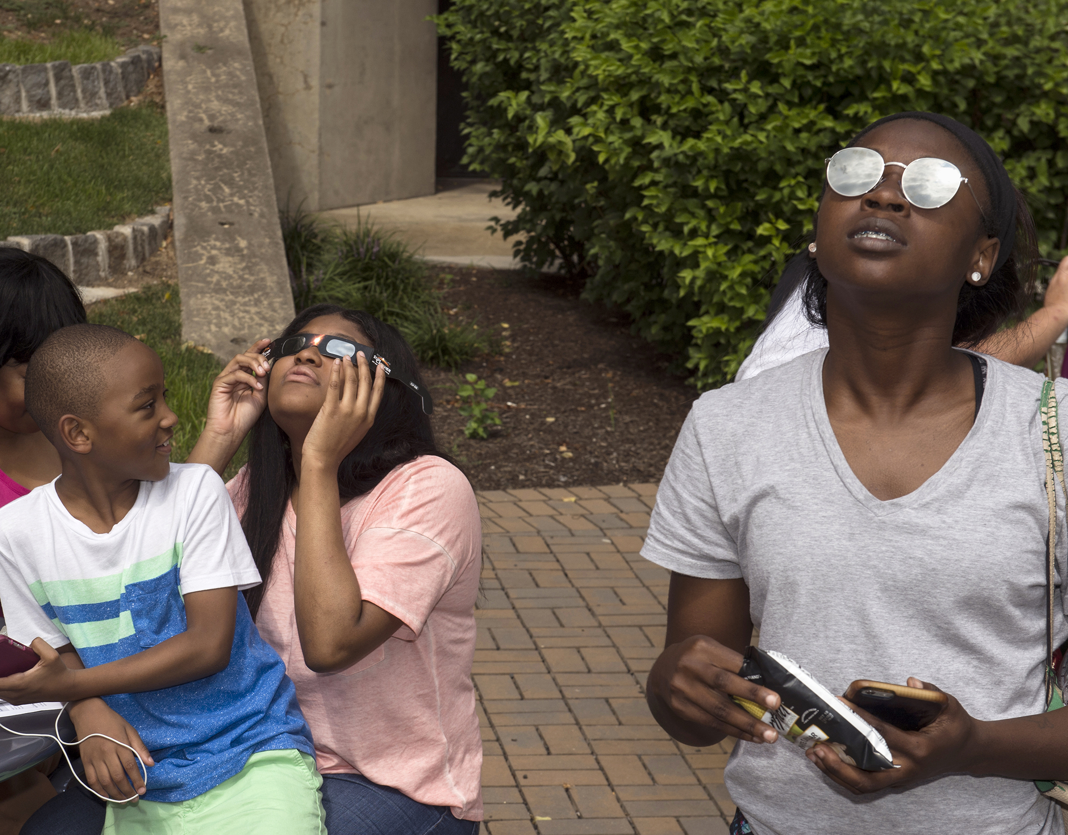 Students, staff and faculty gathered in Bonnell Courtyard on Monday, August 21, to view the Solar Eclipse. The College provided solar eclipse glasses that were shared among the crowd, and members of the College community shared eclipse viewers homemade from boxes.