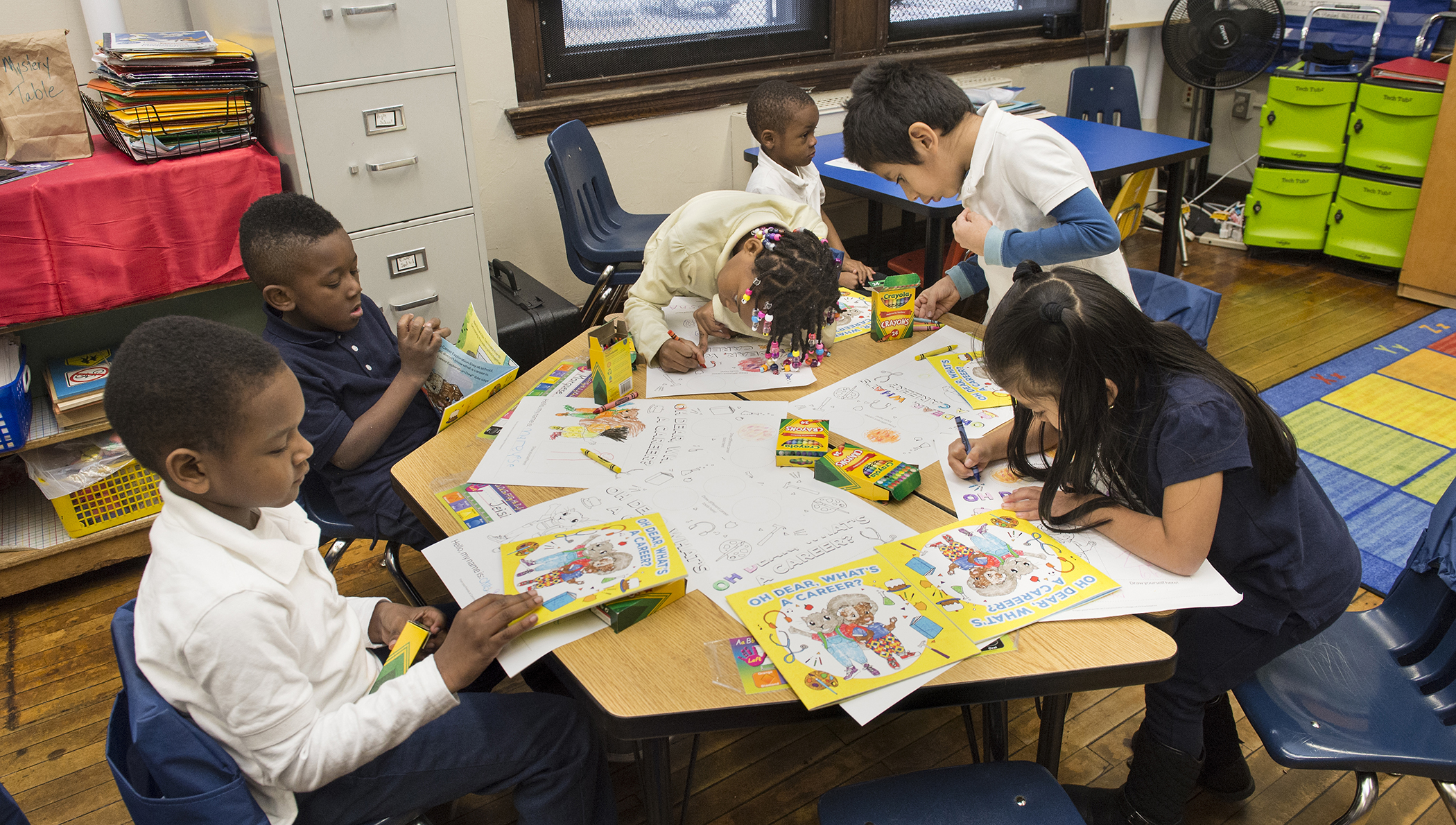 On Nov. 15, Dr. Generals and members of the Marketing and Creative Services team visited the local K-8 and adoptee Spring Garden School to share "Oh Dear, What's a Career?," a children's book written and designed by staff on the Marketing and Creative Services team. Collectively, they read the book aloud to two Spring Garden School classrooms, and discussed limitless possibilities of the students' future as they colored samples of the original design.